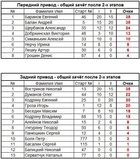 Итоговые результаты и Общий зачет Чемпионата после двух этапов